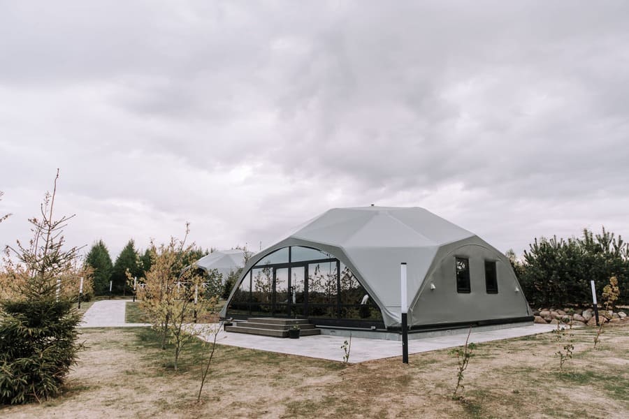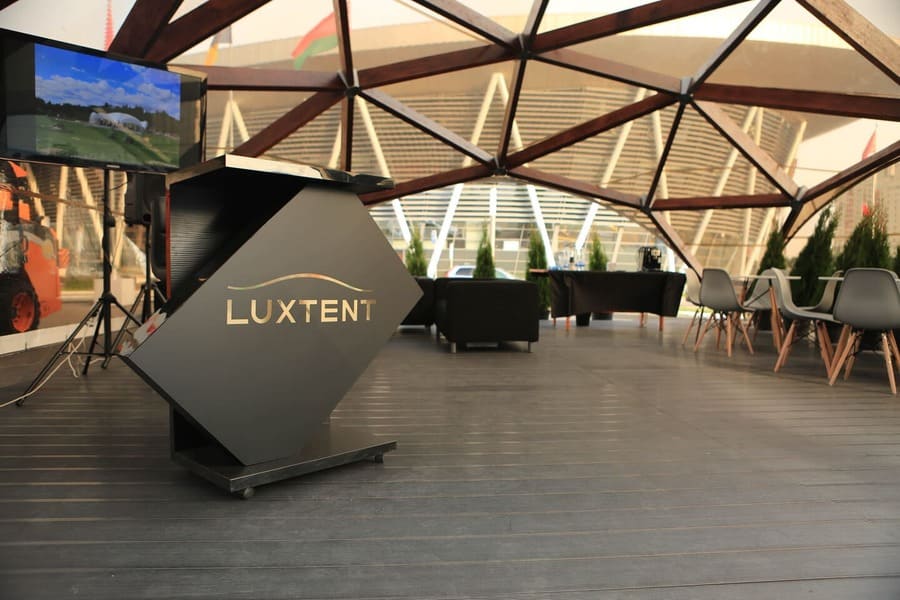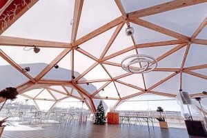 Натуральный каркас из клеёного бруса придаёт конструкции премиальный вид и надёжность, а тентовое покрытие защищает гостей от непогоды, создавая комфортную атмосферу в любую погоду.