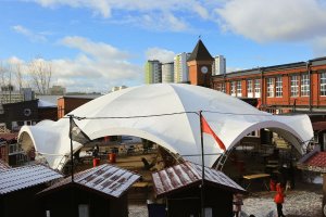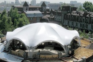 Длина/ширина: 19м/19мПлощадь: 305м2Вес: 3540кгВместимость: банкет-155 чел/фуршет-230 челВысота входа/высота в коньке: 4,5м/5,5мКаркас/купол: сталь/негорючий ПВХ-тентСтены: полумесяц/сплошная/раздвижнаяВремя монтажа/демонтажа: 7 часов/4 часаНагрузки снеговые/ветровые: до 5см/до 20м/сВозможность стыкования: да, 10х10
