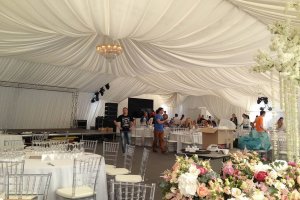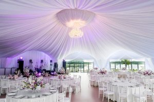 Шатёр комфортно вмещает до 240 гостей при банкетной рассадке или до 360 человек на фуршете, а высота входа 4,5 м и высота в коньке 6,5 м позволяют легко разместить сцену, декорации, световое и звуковое оборудование.
