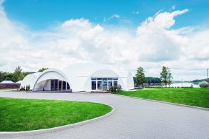 Прочный стальной каркас и купол из негорючего ПВХ-тента гарантируют устойчивость к ветровым нагрузкам до 20 м/с и снеговым до 5 см, а выбор стен — полумесяц, сплошные или раздвижные — делает конструкцию гибкой и удобной для оформления в любом стиле.